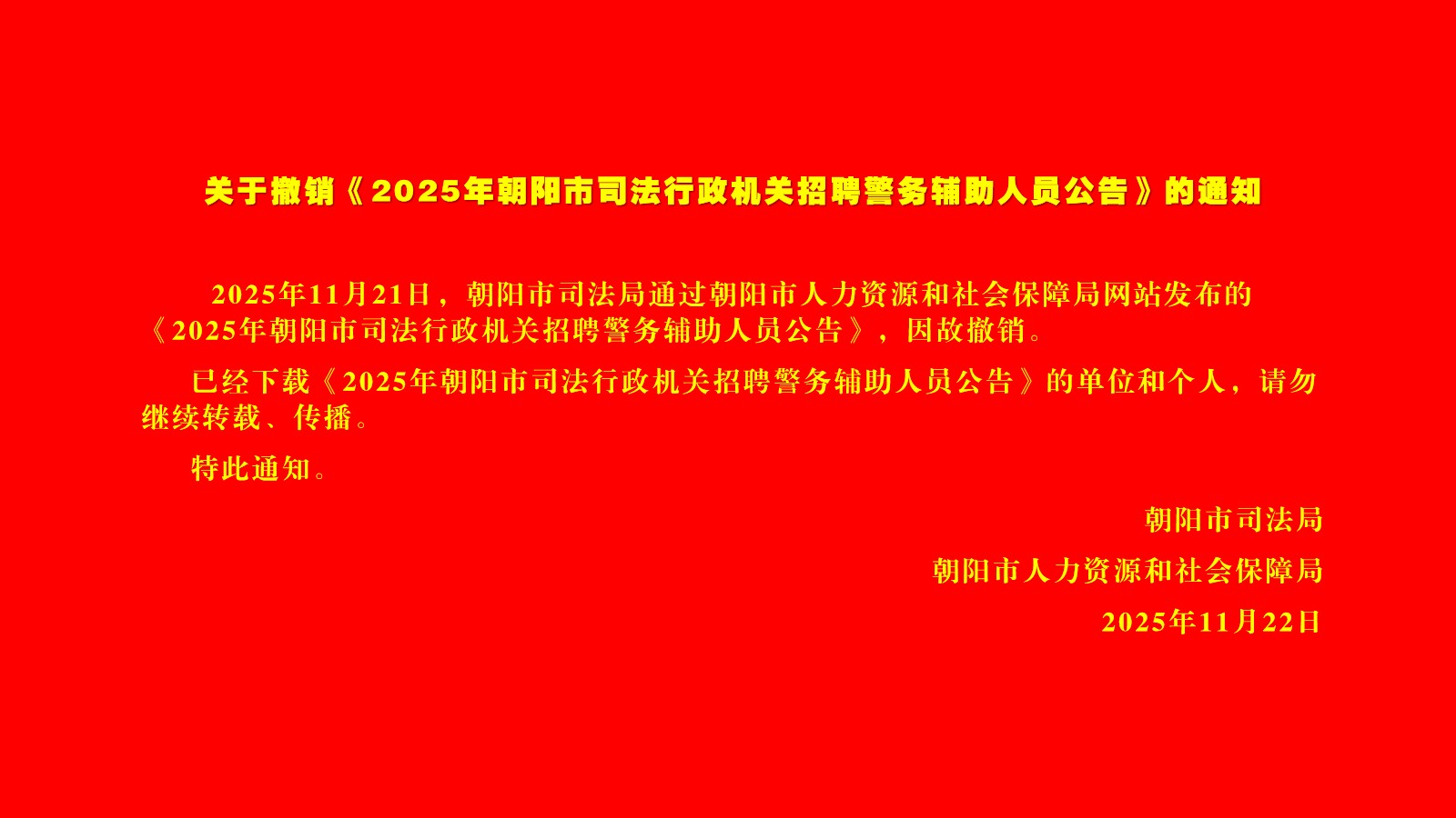 关于撤销《2025年朝阳市司法行政机关招聘警务辅助人员公告》的通知